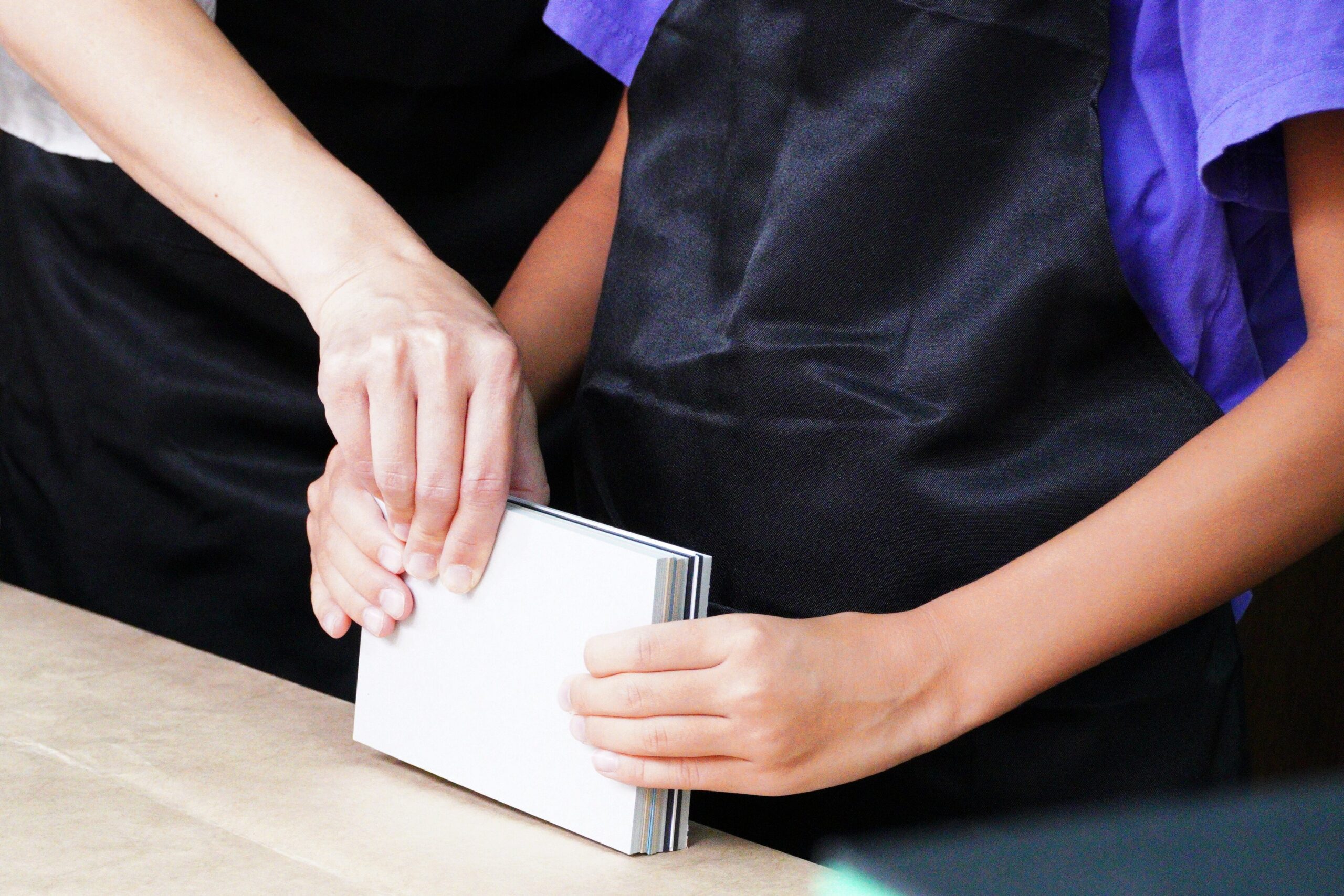 We held our first-ever notebook binding workshop with photographer Shoji Onuma. Using needles and thread typically used in bookbinding, as well as glue, a photobook was bound entirely by hand during this workshop on thread bookbinding.