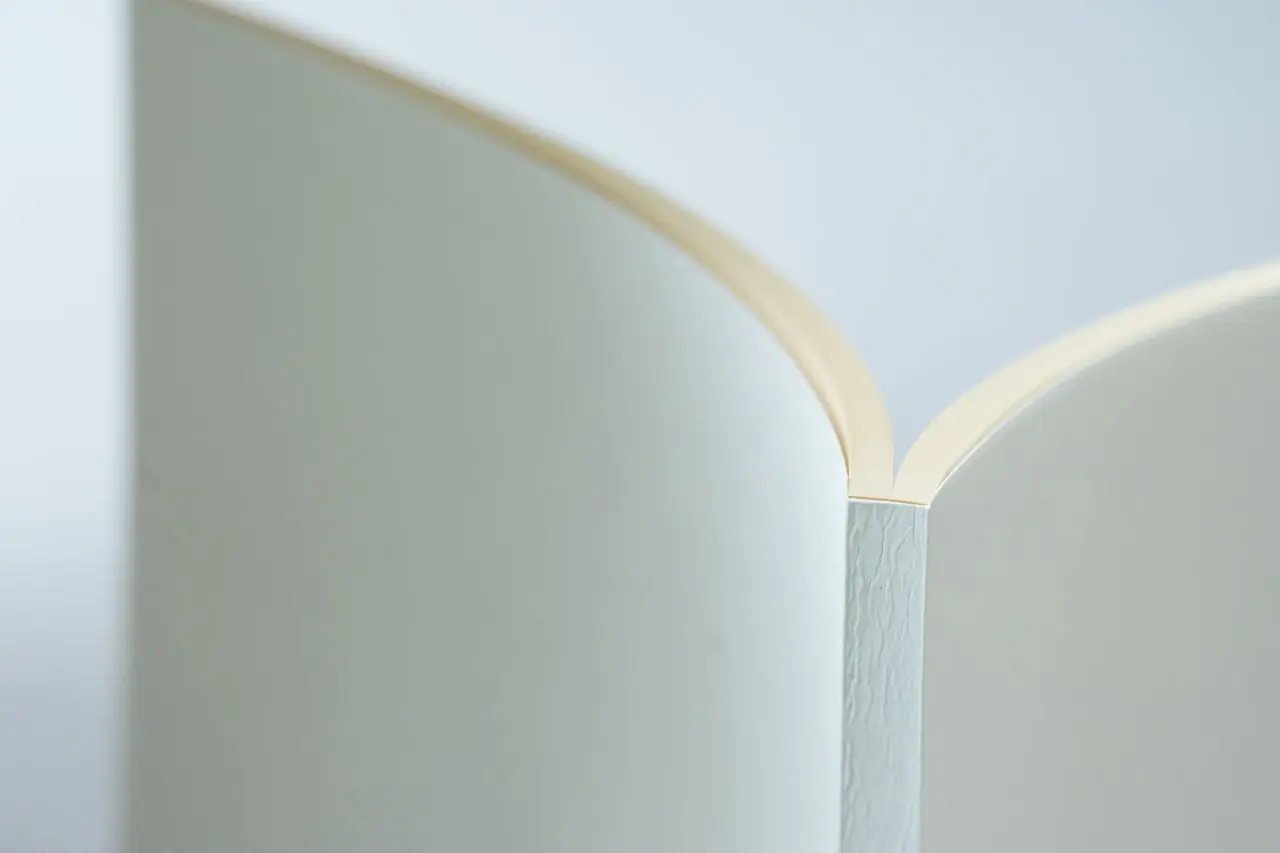 中綴じは背を針金で綴じる製本方法で、8ページ~約64ページの冊子やカタログに向いています。見開きで読みやすく、ページを根元までしっかり開くことができるのが特徴です。