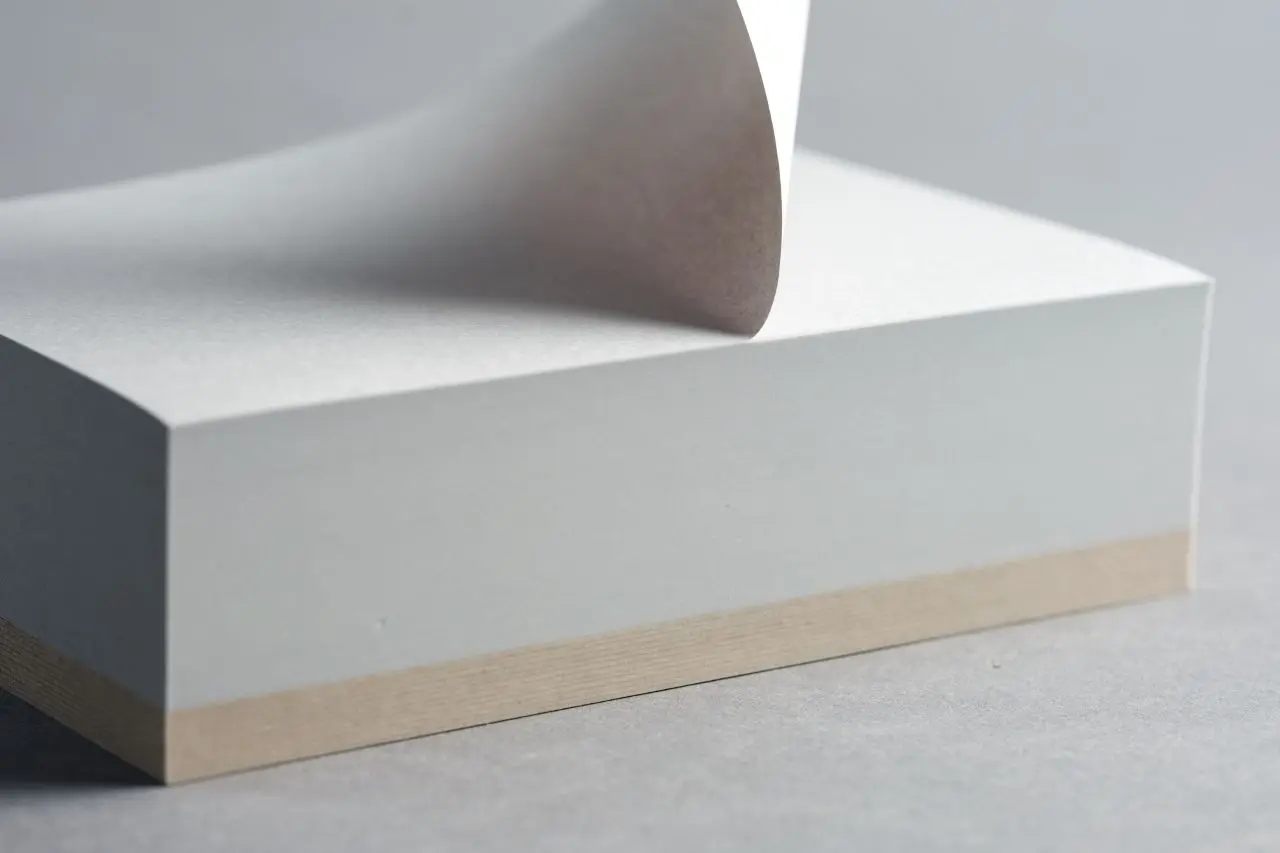 1枚ずつ剥がして使用できる天糊加工。申込書や注文書、伝票、メモ帳、便箋などで使用される製本加工です。