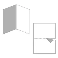 両端を内側に折り込み、さらに2つ折りする、観音開きの折り方です。お店や会社のパンフレットやリーフレットとして使われることの多い折り方です。