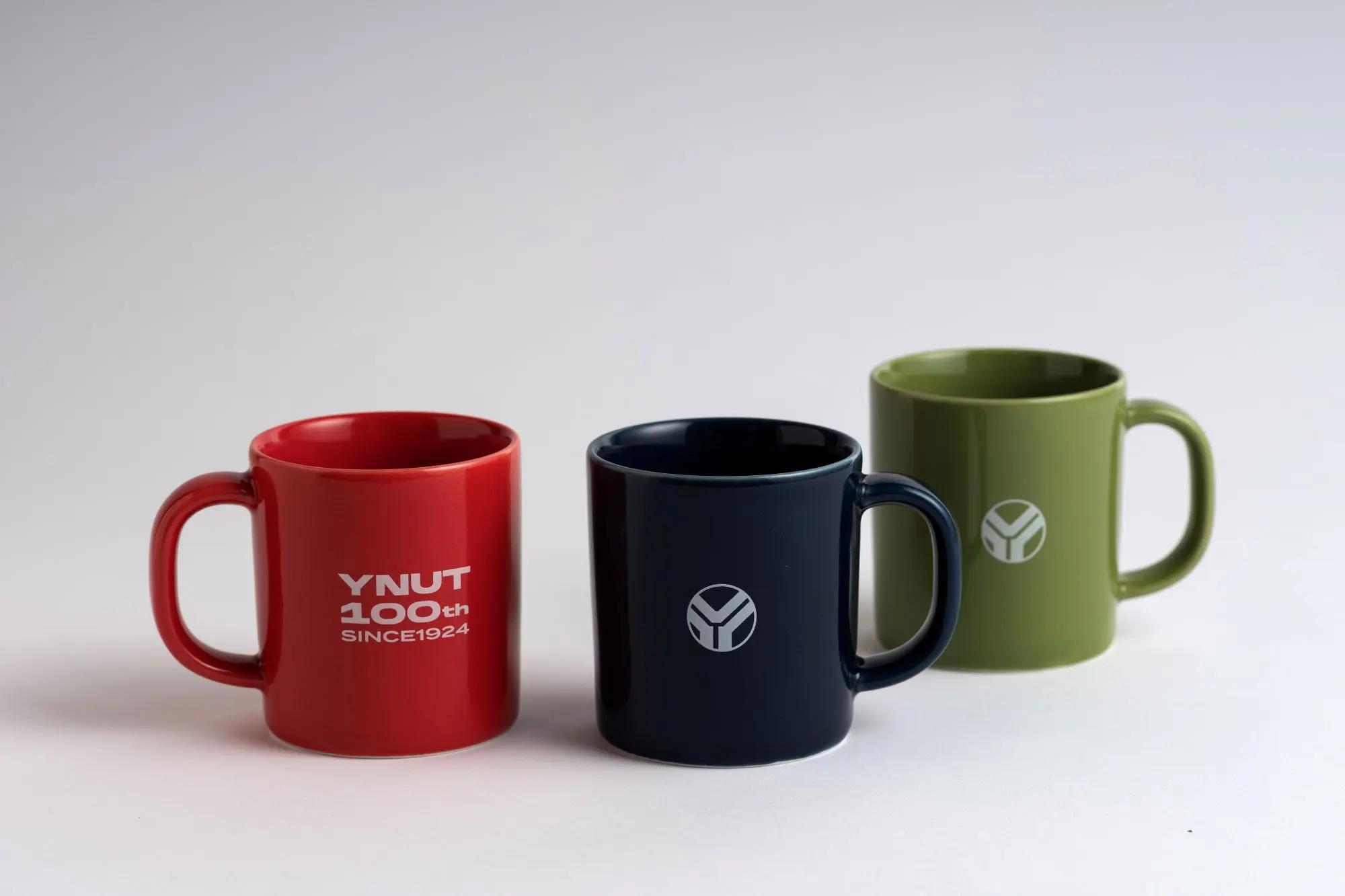 ノートには黒い表紙の方眼タイプを選定し、100周年ロゴを黒色のUV印刷で施しました。控えめながらも存在感のある仕上がりで、日常に溶け込むデザインとなっています。マグカップは西海陶器の “Common” シリーズを採用し、同ロゴを丁寧に焼き付けました。